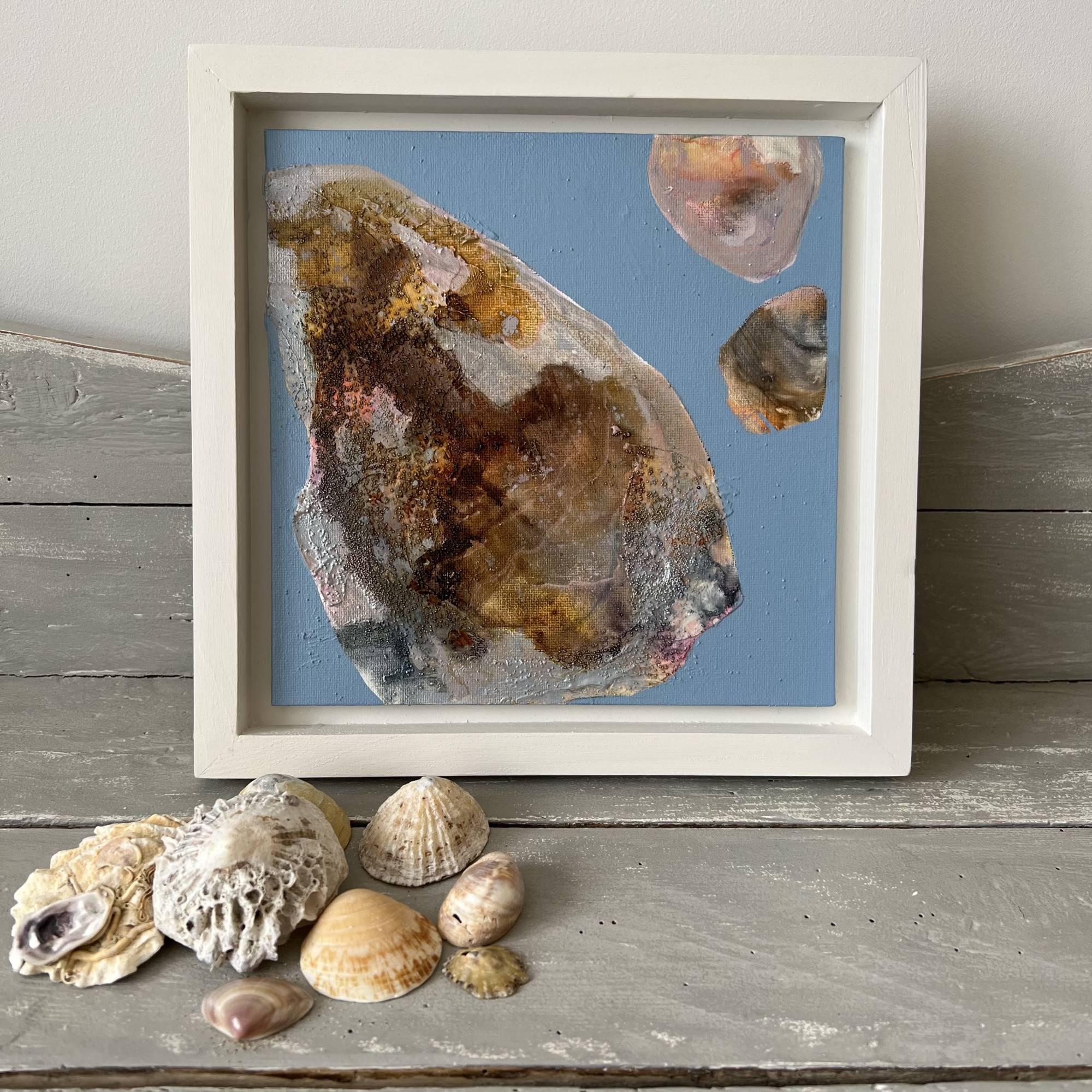 Float mounted in a handpainted off white wooden tray frame. Beautifully coastal and quirky.
