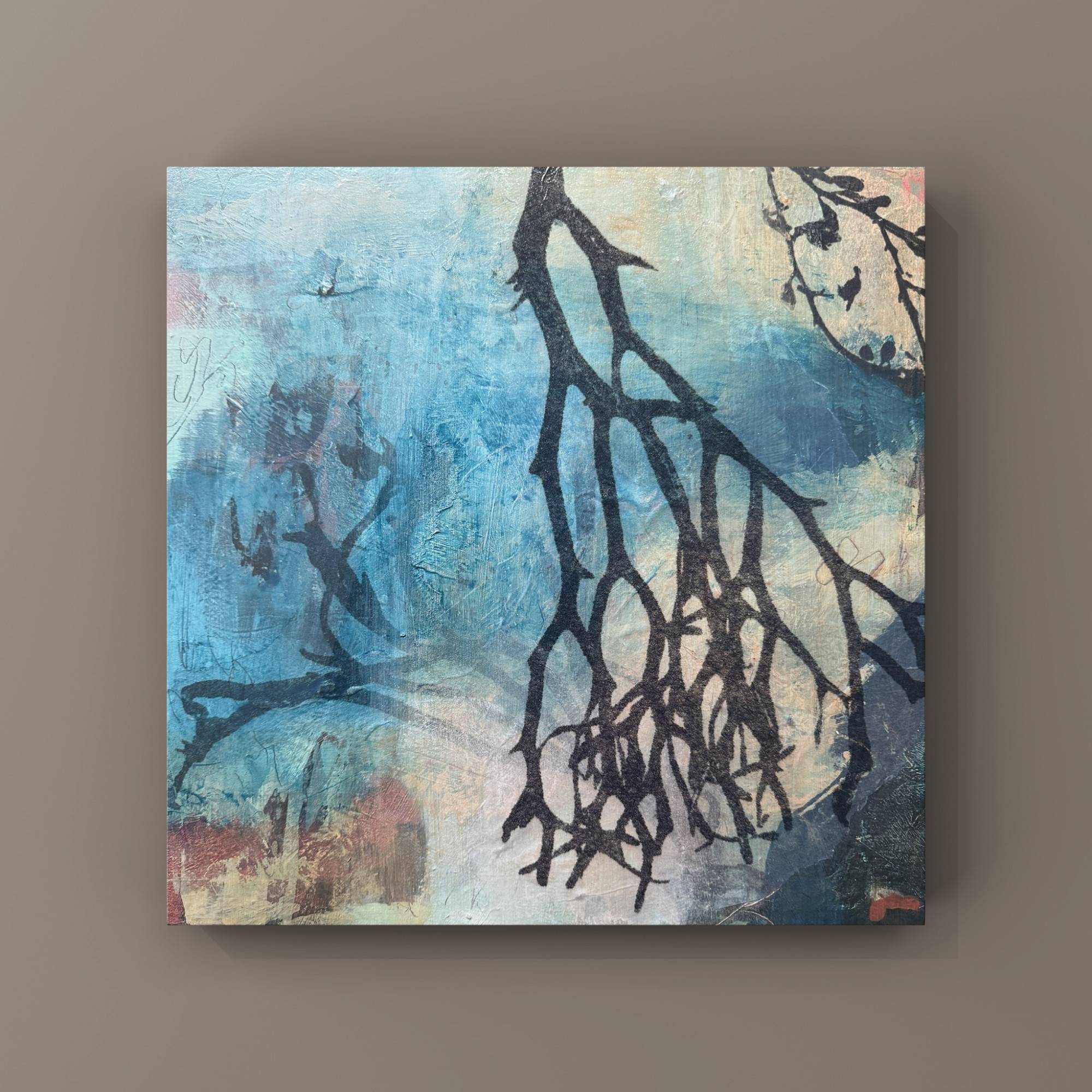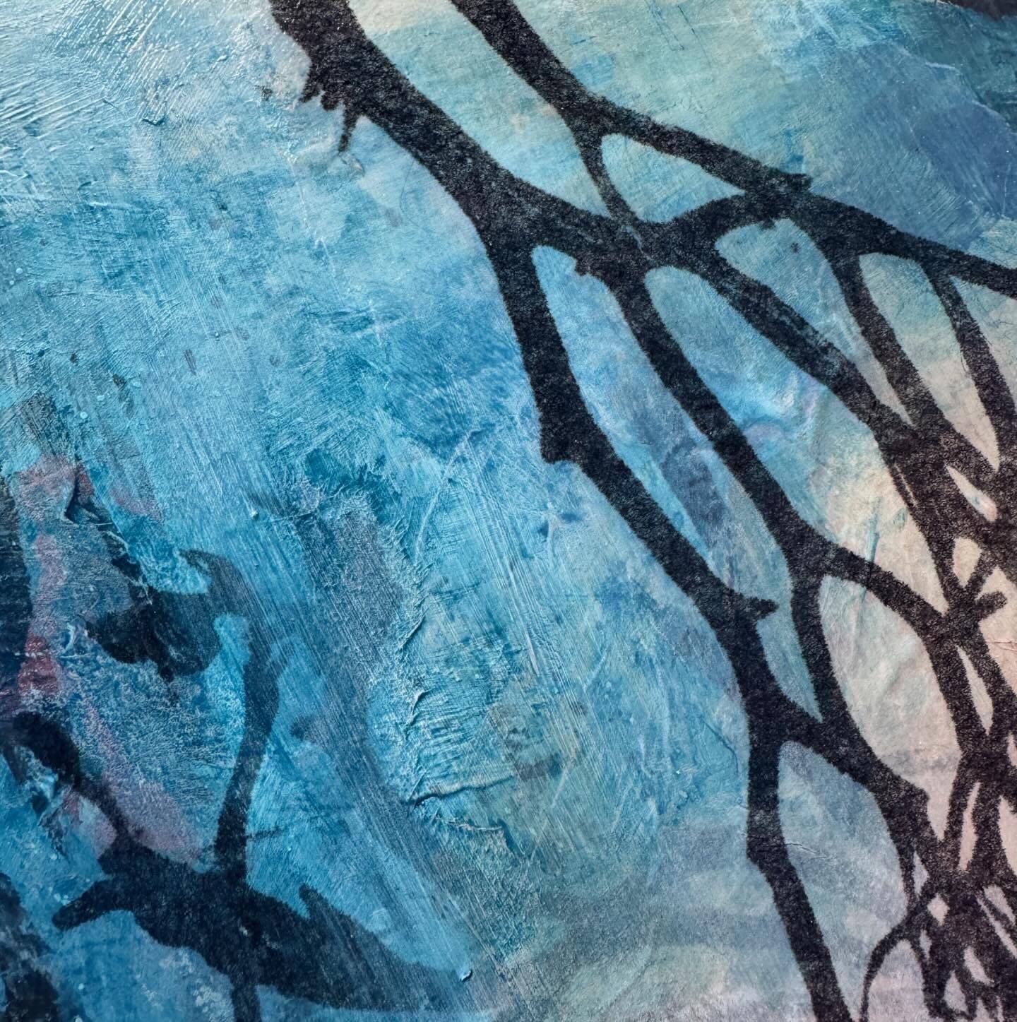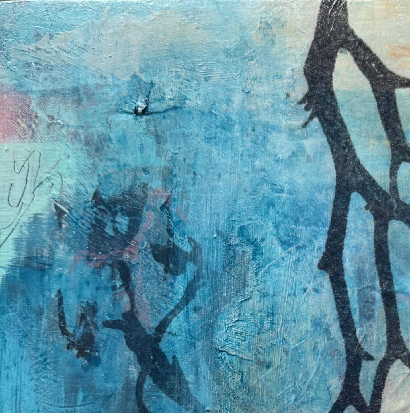 The surface is gently textured and layers of photographic collage give a sense of depth and magic.
