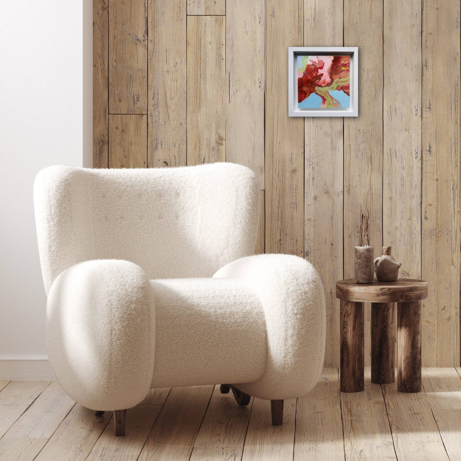 Acrylic paint and ink on canvas panel, float mounted in a handpainted wooden tray frame. Ready to hang.