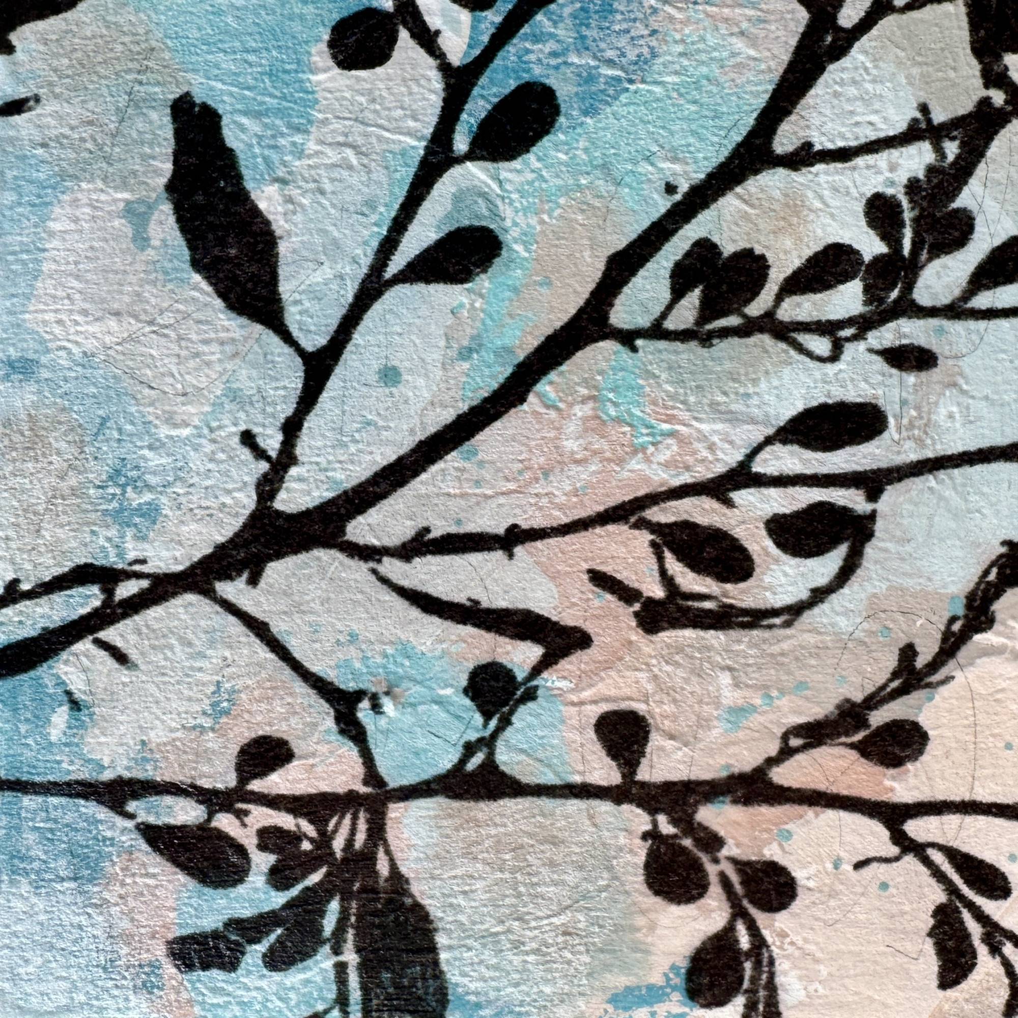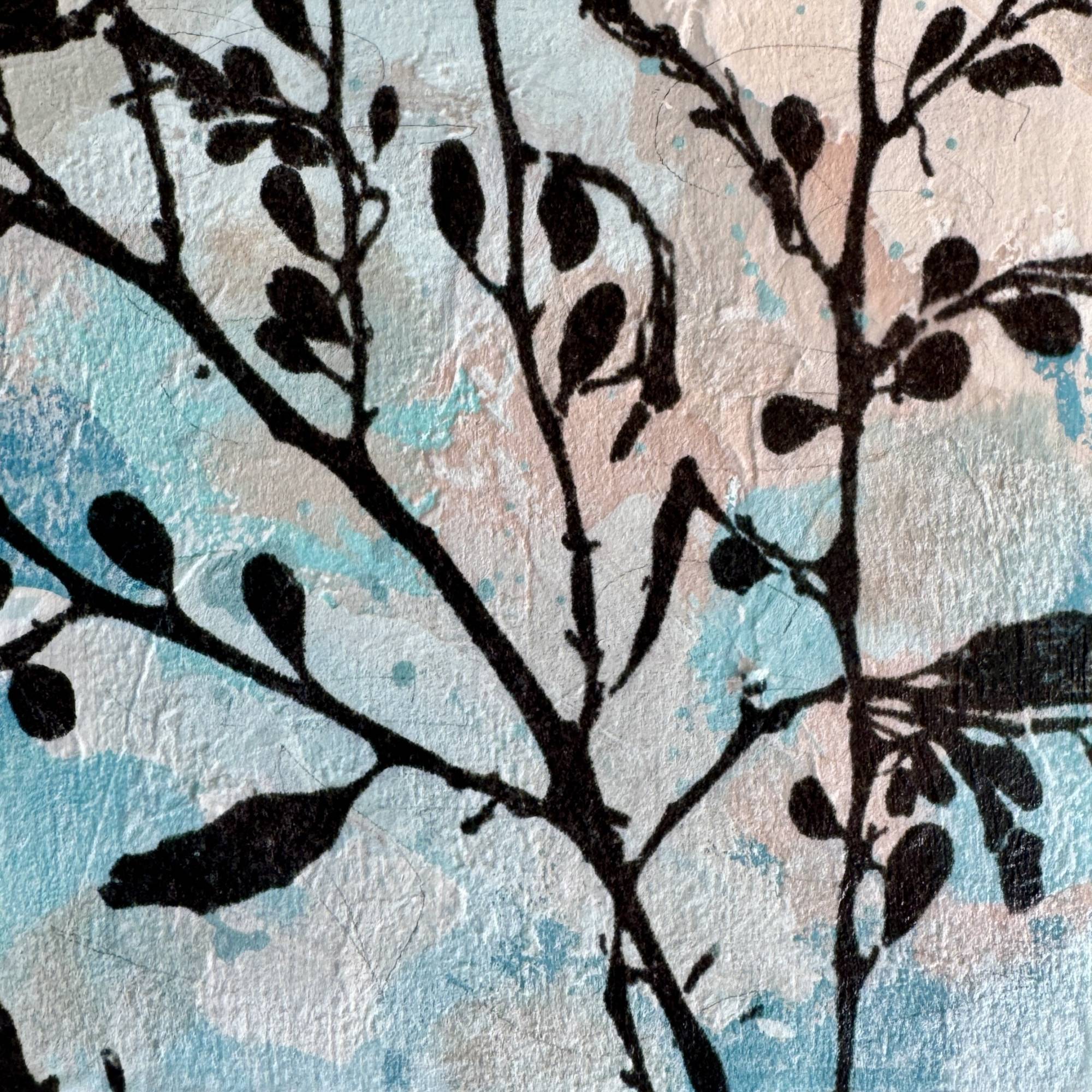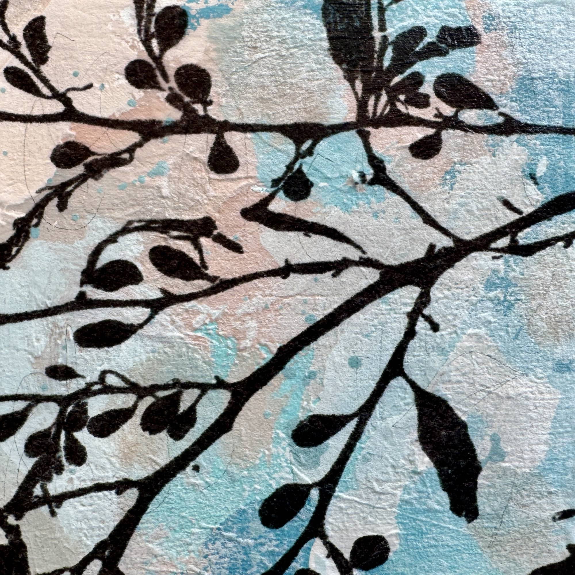 Painted on a chunky 4cm deep cradled panel with a fine photographic collage of one of my seaweed photographs, this piece stands happily on a shelf, or can be wall hung as it is or framed.